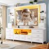 LED TV Stand for Living Room w/20 Colors Lights & Storage Shelf High Gloss TV Cabinet with Large Drawers for Gameroom/Bedroom
